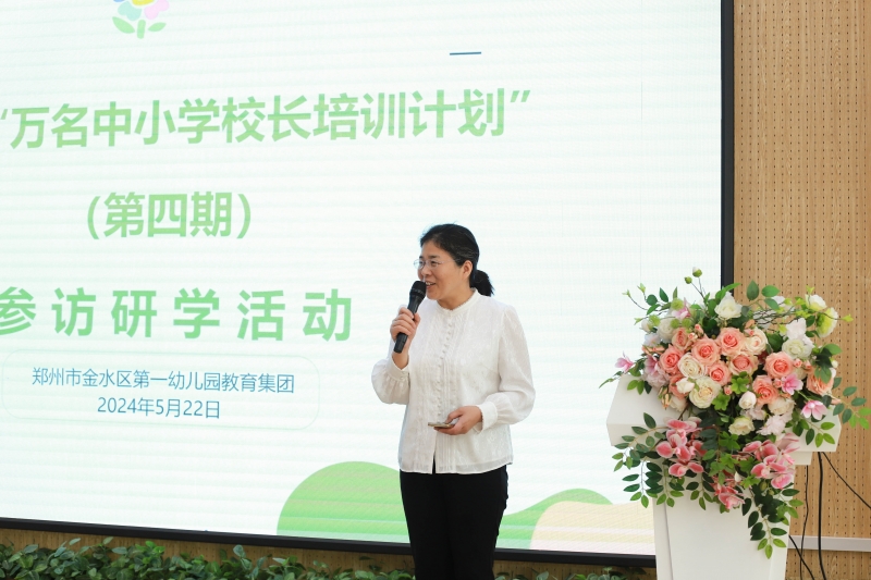 5月22日上午,河南省“萬名中小學校長培訓計劃”(第四期)觀摩研學團隊對鄭州市金水區(qū)第八幼兒園進行研學實踐。參訪嘉賓有河南大學教育學部教育學系黨支部書記王星霞,河南省萬名中小學培訓計劃項目辦公室學員管理部負責人吳雙喜,河南大學教育學部教師培訓管理中心主任王立,河南大學教育學部副教授徐彬、安傳迎,河南省萬名中小學培訓計劃項目辦公室工作人員齊丁及萬名中小學校長幼教學段培訓班學員,共計50余人齊聚一堂,開展了主題為“追隨兒童 見證成長”半日研學觀摩交流活動。