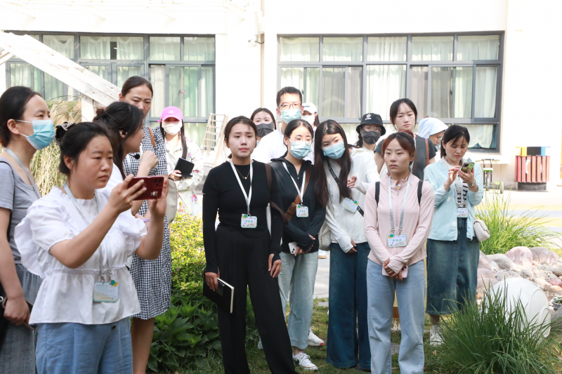 “讓幼兒成為環(huán)境的主人,讓園所成為師幼共同建造的樂園”是鄭州市鄭東新區(qū)第二實(shí)驗(yàn)幼兒園始終的追求。在兩位講解員的帶領(lǐng)下,幼教同行實(shí)地參觀了鄭州市鄭東新區(qū)第二實(shí)驗(yàn)幼兒園的室內(nèi)外環(huán)境,在每一面會(huì)說話的墻前駐足停留、記錄交流,體味蝸蝸樂園中的每一朵花、每一片葉、每一種材料與每一個(gè)人交融互動(dòng)所流淌出來的愛與美的回響。