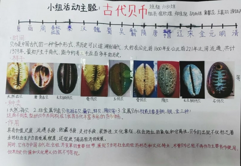 研究中,同學(xué)們以朝代軸為基礎(chǔ),以自己感興趣的研究主題為主線,深入了解該主題在河南的出現(xiàn)、發(fā)展的興衰歷程。在大量的資料查閱中不斷發(fā)現(xiàn)總結(jié)朝代變化原因和啟示影響。學(xué)生們在研究感受中總結(jié)道:“通過這次研究活動,我知道了任何事物的產(chǎn)生與發(fā)展都和當(dāng)時的歷史背景和環(huán)境因素密不可分。商朝有國之大事在祀與戎的說法,所以禮器類文物非常多。唐朝、宋朝國富民強(qiáng)藝術(shù)類文物就特別多。”