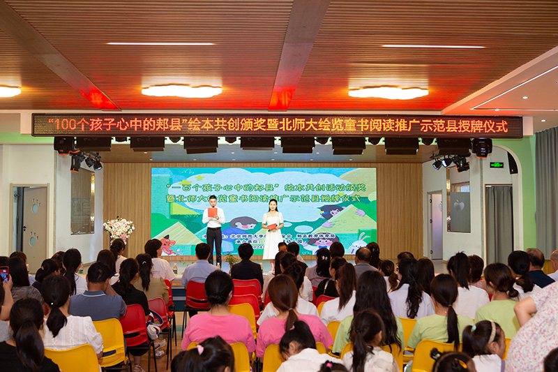 5月28日上午,“100個(gè)孩子心中的郟縣”繪本共創(chuàng)活動(dòng)頒獎(jiǎng)暨北師大繪覽童書項(xiàng)目閱讀推廣示范縣授牌儀式在郟縣新城幼兒園舉行。北京師范大學(xué)專家張蔚,平頂山市教體局基教科科長(zhǎng)張朝華、幼教教研員賈碧野,郟縣教體局黨組書記、局長(zhǎng)李剛,副局長(zhǎng)申曉真出席。各鄉(xiāng)鎮(zhèn)幼教專干、全縣各級(jí)各類幼兒園園長(zhǎng)、作品入選小作者及輔導(dǎo)教師代表200余人參加活動(dòng)。