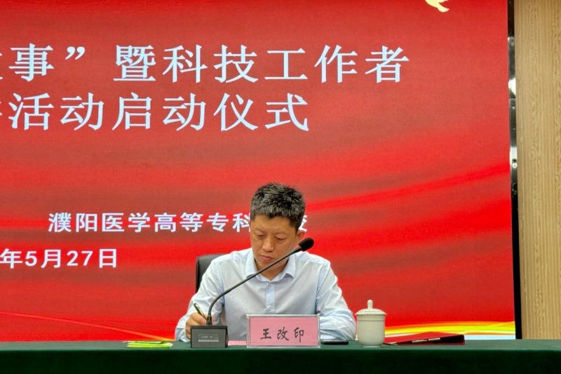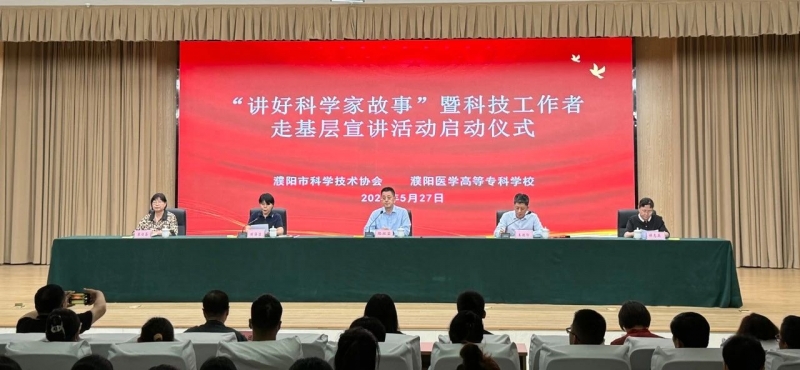 在第八個(gè)“全國科技工作者日”到來之際,2024年5月27日,濮陽市科學(xué)技術(shù)協(xié)會、濮陽醫(yī)學(xué)高等專科學(xué)校(以下簡稱“濮陽醫(yī)專”)在易明樓一樓大報(bào)告廳聯(lián)合舉辦“講好科學(xué)家故事”暨科技工作者走基層宣講活動啟動儀式。濮陽醫(yī)專校長路紅顯、市政府辦公室副主任王改印、市科協(xié)黨組書記張海潔、濮陽醫(yī)專副校長袁俊齋,市科協(xié)黨組成員、副主席侯志英出席。科學(xué)家精神宣講團(tuán)成員、濮陽醫(yī)專師生代表400余人參加。活動由張海潔主持。