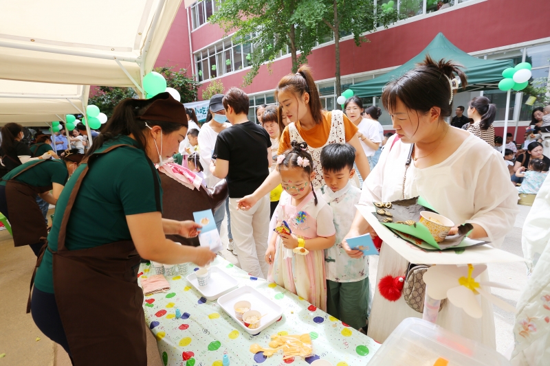 在“樂享國潮館”“紅色記憶館”“靈寶小吃一條街”“游園表演區(qū)”“戶外繪畫區(qū)”“親子手工區(qū)”“美食嗨翻天”“陽光玩樂區(qū)”“愛心義賣”“開心美食區(qū)”等十大類60多個活動區(qū)角中,師生、家長一起欣賞繪畫、剪紙、面塑、書法、燈籠、木偶戲曲、東北印象、捶草印花、漢服表演、童年時光機等傳統(tǒng)文化,體驗中國功夫、送快遞、消防員、空少空乘、美食烹飪等不同文化,到靈寶小吃一條街品嘗傳統(tǒng)美食,不僅鍛煉了動手能力,也對中國傳統(tǒng)藝術(shù)和文化有了更深的認識和理解。