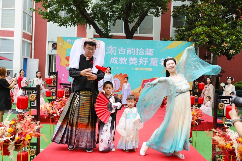 “國潮時裝秀”將活動推向高潮。孩子們和家長穿上漢服和旗袍,在T臺表演展示。圍觀的人們用手機記錄下這一刻,為孩子們的勇氣和創(chuàng)意喝彩。除了傳統(tǒng)文化體驗,靈寶市金蕾幼兒園還特別設(shè)計了一系列現(xiàn)代潮流游戲,如“科學發(fā)現(xiàn)室”“紙牌搭搭樂”“氣球DIY”“右腦開發(fā)”“電玩游戲”等,讓孩子們在玩樂中感受傳統(tǒng)與現(xiàn)代的完美融合。