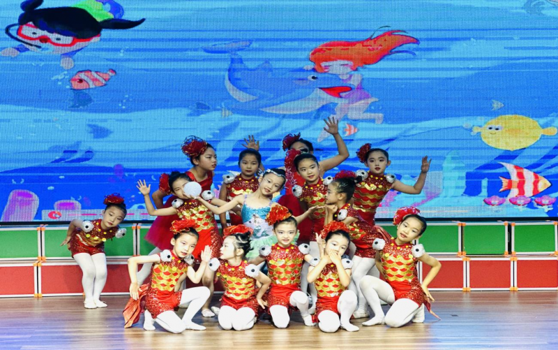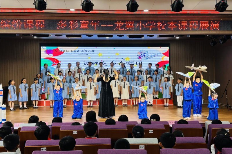 學(xué)校報(bào)告廳里,校本課程成果展演形式多樣、內(nèi)容豐富。湖畔之聲合唱團(tuán)“飛向藍(lán)天”、“聲”如夏花課程“詩意中國(guó)”、“Super Simple Song”課程“Big big world”、國(guó)風(fēng)舞龍課程“上春山”、彩虹口風(fēng)琴“螢火蟲”等11個(gè)節(jié)目輪番上演,學(xué)生在悠揚(yáng)的音樂中或舞或唱、或奏或跳,盡顯才華。