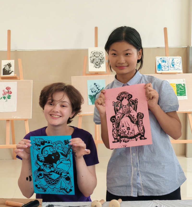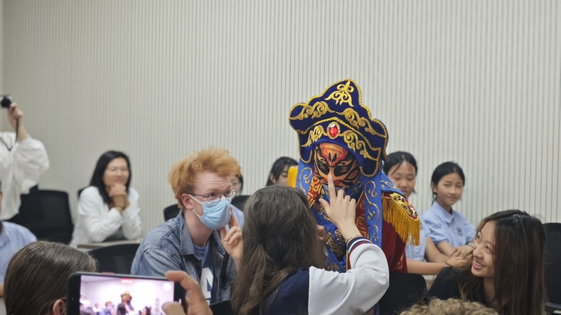 學校以社團為載體,開展互動式交流,帶領美國學生近距離觀摩變臉藝術、版畫制做、臉譜繪畫等,進一步加深了美國學生對中華文化的理解和認識。教師趙海龍帶領街舞社團的學生與美國學生一同學習“龍舞”,展現中華優(yōu)秀傳統(tǒng)文化中不畏艱難、勇往直前的精神內核,贏得美國學生的陣陣喝彩。