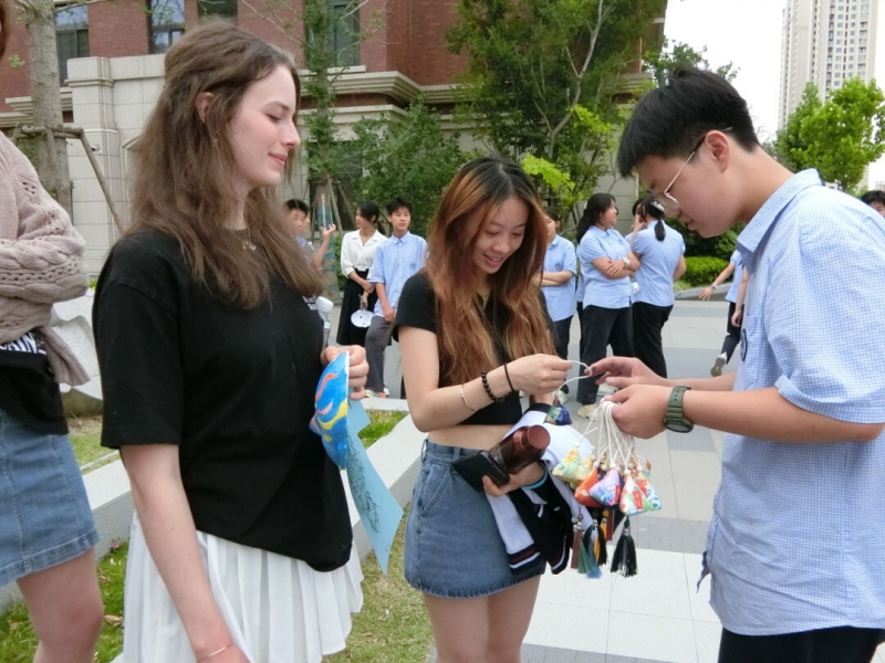 活動結束前,鄭州高新區(qū)第二實驗中學學生代表馮一諾向美國學生送上香囊,介紹端午的來歷并送上祝福。