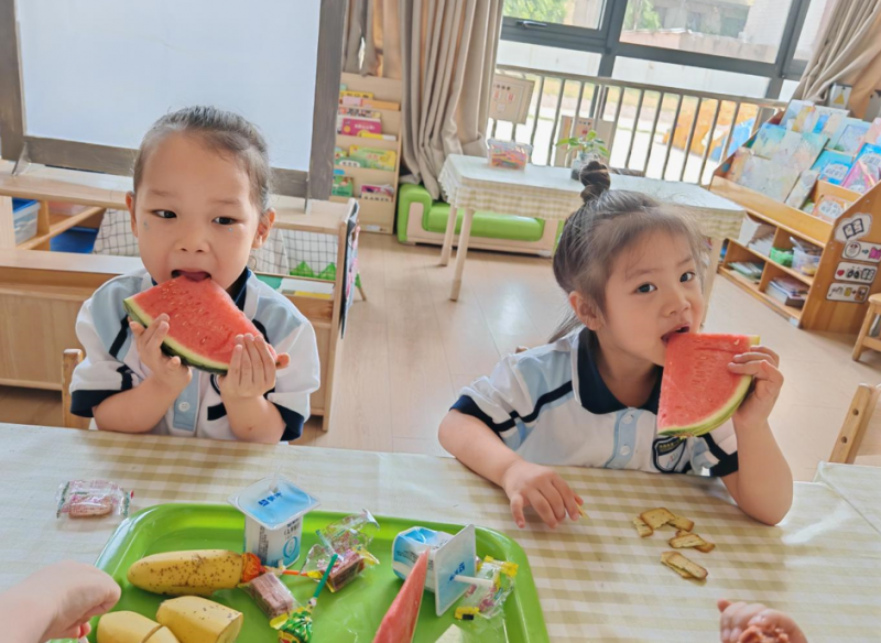 童年“食”光,甜蜜分享。當(dāng)“六一”與美食撞個(gè)滿懷,必定會(huì)擦出別樣的火花,一起來看看,屬于一幼萌娃的六一美食嘉年華吧——一桌桌琳瑯滿目的美食,西瓜、棒棒糖、香蕉、酸奶、山楂漢堡等美食讓孩子們目不暇接,好不歡喜呀!孩子們興奮地挑選著自己喜歡的美食,和好朋友一起分享。一口美味,一縷香甜,幼兒園處處彌漫著溫馨、快樂和幸福。