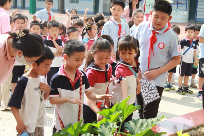 在哥哥姐姐們的帶領(lǐng)下,幼兒園的孩子們參觀了文化路第二小學(xué)的“小農(nóng)場(chǎng)”,感受到了這番生機(jī)盎然的田園景象,與瑯瑯書聲相映成趣。同時(shí),孩子們也了解了有關(guān)種植蔬菜的知識(shí),在和蔬菜的親密接觸中收獲了不少樂趣。