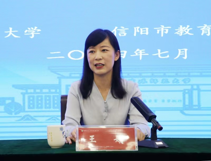 王娟指出,本次會議標(biāo)志著信陽師范大學(xué)與信陽市教育教學(xué)研究室在創(chuàng)新教師教育共同體機制、打造優(yōu)質(zhì)教師教育資源方面,已形成相互支撐、共建共享的協(xié)同格局。希望雙方以此次會議為契機,圍繞“以教育家精神為引領(lǐng),培養(yǎng)造就黨和人民滿意的高素質(zhì)專業(yè)化創(chuàng)新型教師隊伍”共同目標(biāo),打通雙向賦能、雙向服務(wù)通道,聚焦建設(shè)高質(zhì)量教師教育體系,辦好黨和人民滿意的教育,實施科教興國、人才強國、鄉(xiāng)村振興戰(zhàn)略等問題,深入交流、共同探討、互學(xué)互鑒,不斷加強在教師教育協(xié)同中的同頻共振,為教師教育高質(zhì)量、基礎(chǔ)教育均衡發(fā)展提供信陽經(jīng)驗,為教育強國建設(shè)提供信陽樣板。