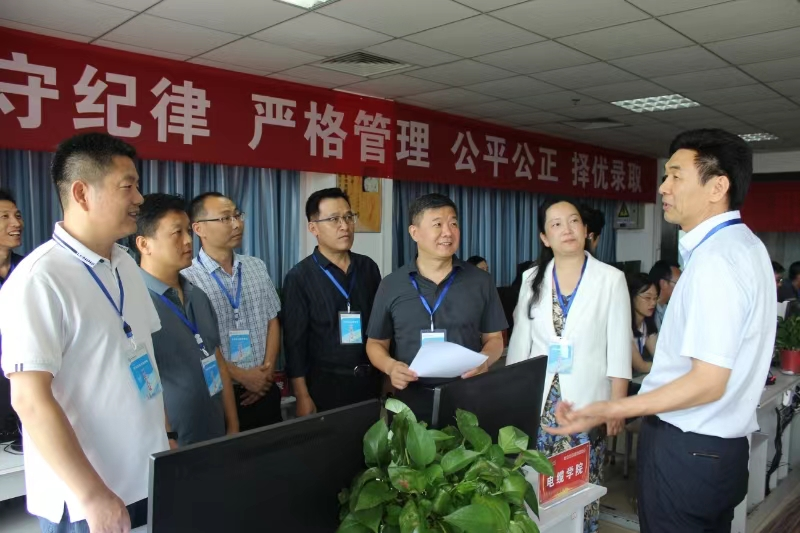 在招生錄取大廳,校領(lǐng)導(dǎo)認真查看了各學院的投檔情況,詳細詢問了總體錄取完成情況以及河南省本科二批專業(yè)投檔情況。郭祖華在講話中對今年招生錄取工作給予高度評價,并指出招生錄取工作事關(guān)學校的長遠發(fā)展和人才培養(yǎng),涉及廣大考生和家長的切身利益,社會關(guān)注度高,在招生錄取過程中,一定要認真負責,認真貫徹國家招生錄取有關(guān)政策,堅決落實教育部招生“陽光工程”,嚴格執(zhí)行學校招生錄取工作紀律,確保招生錄取工作公開、公平、公正。