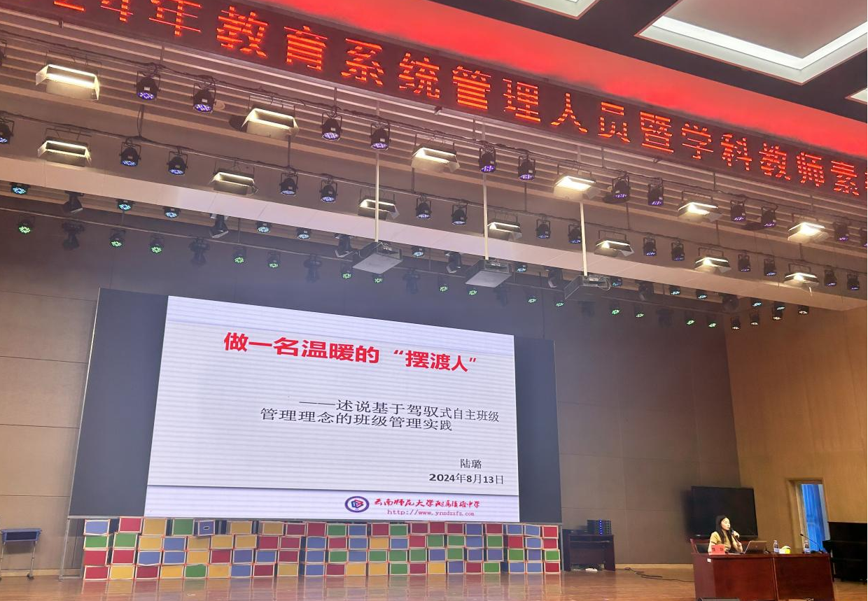 鎮(zhèn)雄中學(xué)教師陸璐以《做一名溫暖的“擺渡人”——述說(shuō)基于駕馭式自主班級(jí)管理理念的班級(jí)管理實(shí)踐》為題,結(jié)合多年班主任管理工作經(jīng)驗(yàn),詳細(xì)講解了“班級(jí)管理”的具體操作、班級(jí)文化和精神文化,希望做一名溫暖的“擺渡人”。