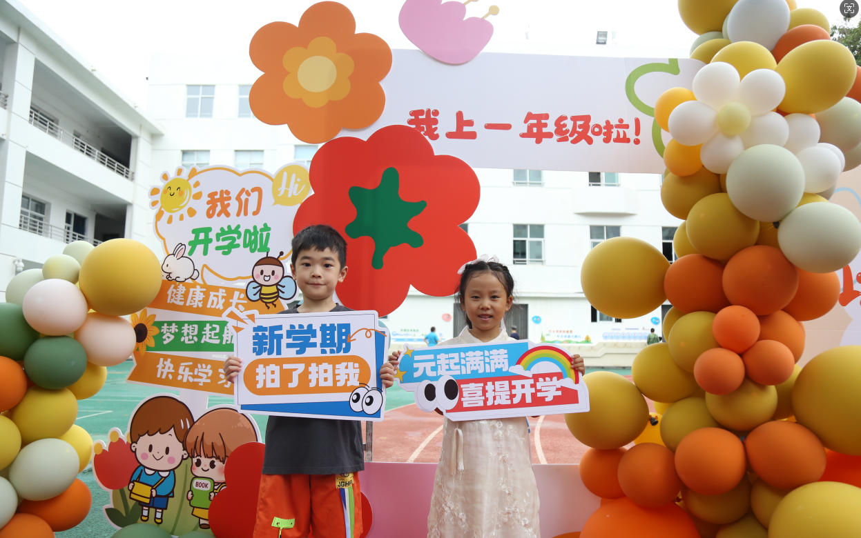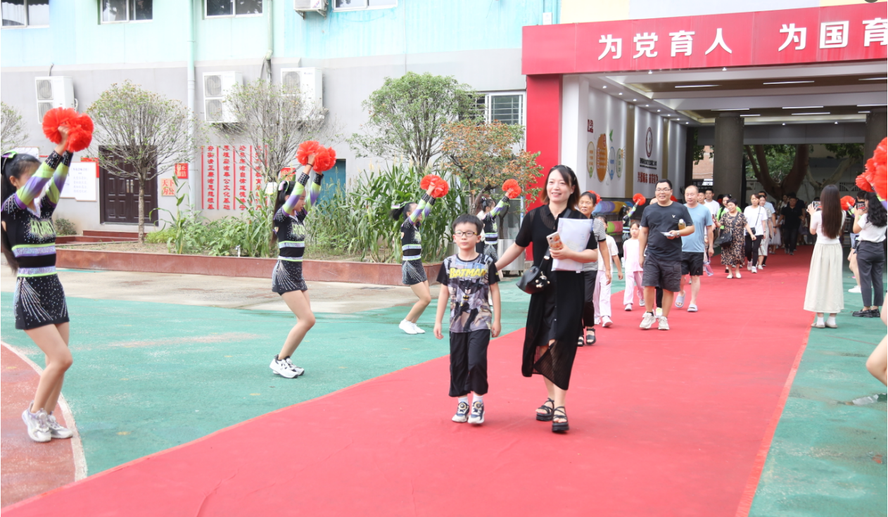 學(xué)校活力寶貝啦啦操社團在校門廳歡迎新生及家長,少年先鋒管樂團的學(xué)生為大家?guī)砑で轱w揚的演奏盛宴,營造溫馨的開學(xué)氛圍。小朋友們在父母的陪伴下步入紅毯,在主背景前合影留念。“咔嚓”一聲,時間在此定格,為孩子們留下了新路程的照片,相信入學(xué)時的場景將會成為孩子們一生的珍貴回憶。在入學(xué)儀式之后,孩子們將正式跨入小學(xué)的大門,成為一名小學(xué)生了!