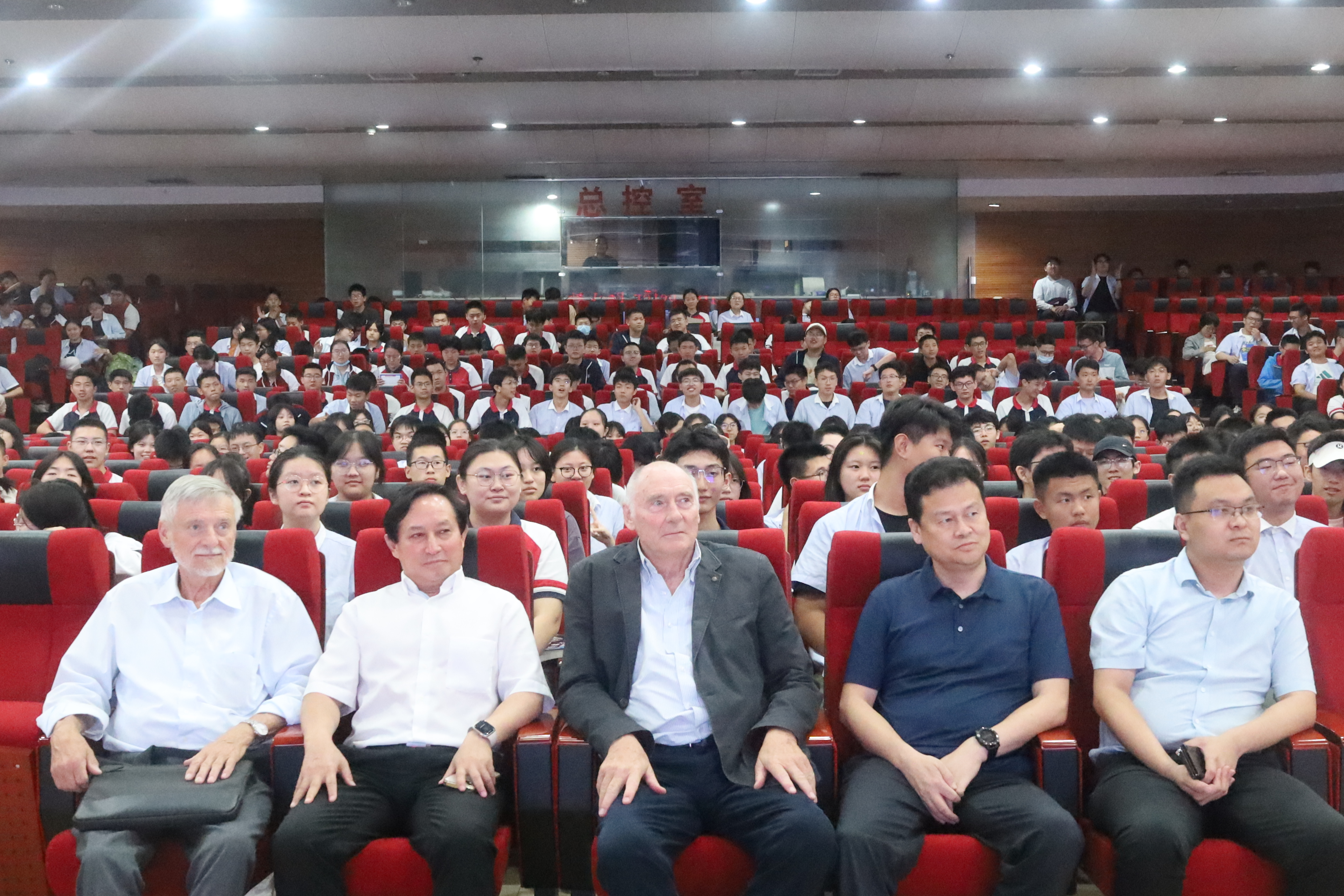 Michael Zhengmeng Hou教授、Dietmar M?ller教授、Hans-Peter Beck院士分別以“德國創(chuàng)新型人才培養(yǎng)模式”“德國工業(yè)4.0”“德國綠色低碳轉(zhuǎn)型”為題,圍繞德國教育體制、德國工業(yè)4.0戰(zhàn)略和德國綠色轉(zhuǎn)型發(fā)展等方面同與會(huì)師生開展了一場跨文化國際交流。其間,學(xué)生興致高昂、現(xiàn)場氣氛熱烈。Hans-Peter Beck院士對學(xué)校學(xué)生的外語水平與思維深度給予高度評價(jià),并邀請學(xué)生上臺(tái)合影留念。