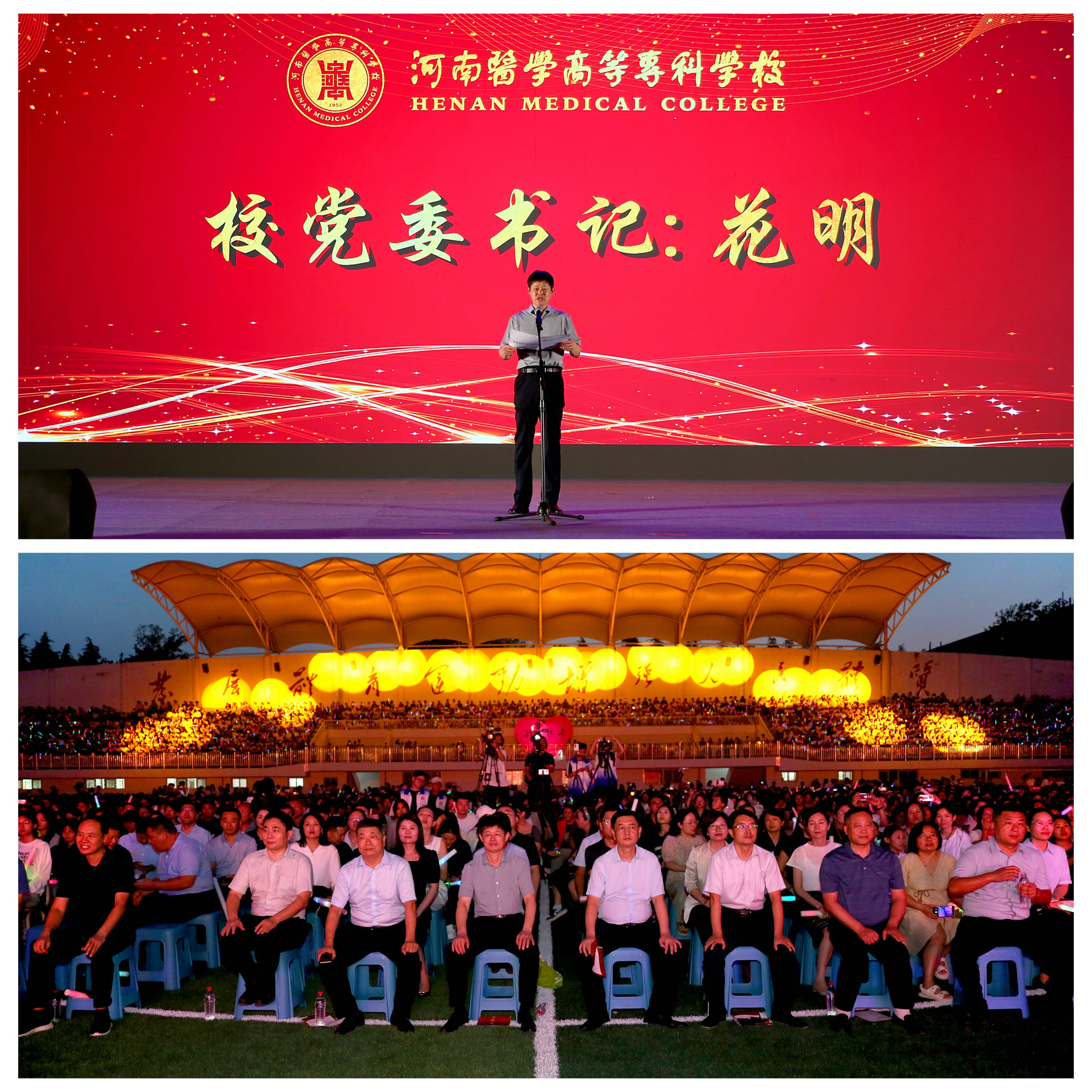 9月9日晚,河南醫(yī)學(xué)高等專科學(xué)校熱烈慶祝第40個教師節(jié)暨2024級迎新晚會在田徑場隆重舉行。在鄭校領(lǐng)導(dǎo)花明、孫韜、李鵬濤、張進(jìn)忠、李建豐、霍振昂出席活動,全體教職工和2023級、2024級全體學(xué)生8000余人觀看了晚會。