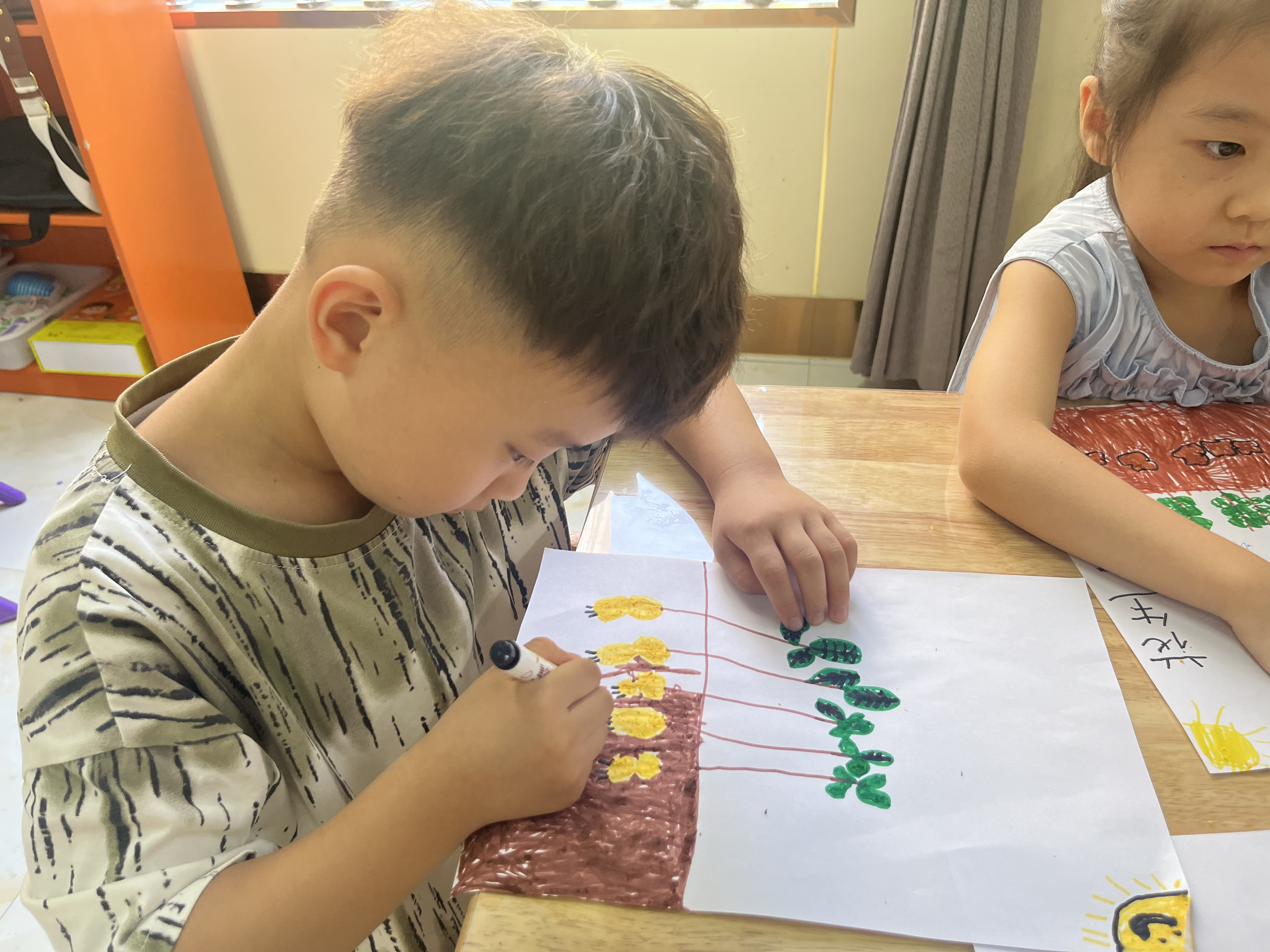 有了收獲花生的體驗(yàn),孩子們在品嘗中與小伙伴一起交流,并自發(fā)用繪畫的方式記錄下花生的生長、花生外形等。