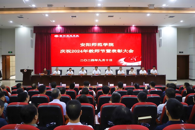 9月10日上午,安陽師范學(xué)院慶祝第40個教師節(jié)暨表彰大會舉行。校黨委書記王全良、校長孔國慶等全體校領(lǐng)導(dǎo)與獲獎集體和個人、全體中層干部、教師代表、離退休老同志代表、學(xué)生代表等歡聚一堂,共同慶祝第40個教師節(jié)。孔國慶主持會議。