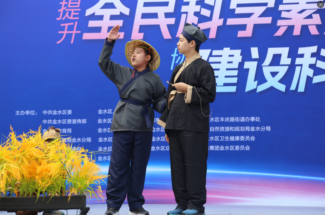 活動現(xiàn)場,金水區(qū)文源小學(xué)的科技劇《夢》引得陣陣掌聲。孩子們各展風(fēng)采,他們以飽滿的精神狀態(tài)投入科普劇的演繹。他們透過一粒種子找到了屬于袁隆平和宋應(yīng)星共同的夢想——天下富足、禾下乘涼。這是千年追尋、今朝圓夢的故事,更是求真務(wù)實、造福人民的科學(xué)家精神的寫實。孩子們生動活潑、新穎有趣的表演,更彰顯了新一代少年兒童的責(zé)任擔(dān)當(dāng)。