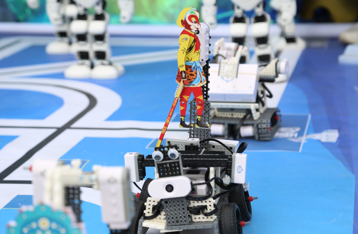 同時,金水區(qū)文源小學(xué)“共生紀(jì)元 創(chuàng)想未來”科技展臺引得眾多嘉賓駐足圍觀。孩子們利用自己在所學(xué)到的編程知識,為不同的機(jī)器人創(chuàng)設(shè)不同的動作;一件件充滿創(chuàng)意的科技作品,也蘊含了奇妙的科學(xué)原理,充分展示了孩子們較強(qiáng)的動手實踐能力,體現(xiàn)了他們探索創(chuàng)新的意識和崇尚科學(xué)的精神。小小講解員們自信大方,熱情地為現(xiàn)場嘉賓介紹每一個科技作品的獨特之處。他們話語中充滿了對科技的熱愛和對創(chuàng)新的向往,讓人仿佛也跟著一起,踏入了這個充滿奇幻與可能的科技世界。
