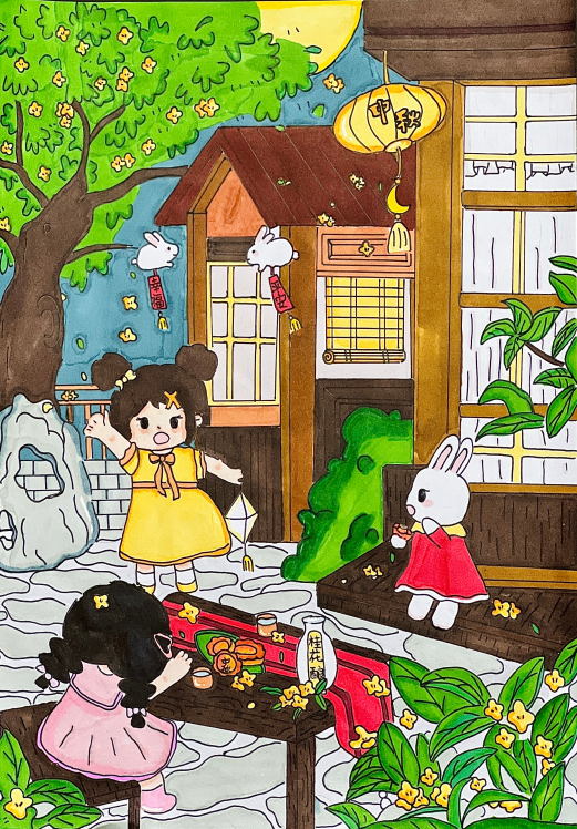 中秋,這個(gè)承載著中華民族悠久歷史與深厚情感的傳統(tǒng)節(jié)日,蘊(yùn)含著無盡的時(shí)代價(jià)值、道德理念與精神內(nèi)涵。美術(shù)組教師們巧妙地將美術(shù)教育與中秋佳節(jié)相結(jié)合。在課堂上,教師們引導(dǎo)學(xué)生積極參與其中。孩子們拿起手中的畫筆,就像揮舞著魔法棒,通過繪畫的方式描繪出心中那輪皎潔的明月、熱鬧的中秋團(tuán)圓場景,以及對嫦娥奔月等美麗傳說的想象。他們用色彩和線條勾勒出對中秋的獨(dú)特理解與美好憧憬。三四年級的孩子們通過手工造型的藝術(shù)表達(dá),不僅展現(xiàn)了他們的創(chuàng)造力和想象力,更是在潛移默化中深入地理解了中秋的意義。在創(chuàng)作的過程中,進(jìn)一步提升了孩子們的傳統(tǒng)文化素養(yǎng)。