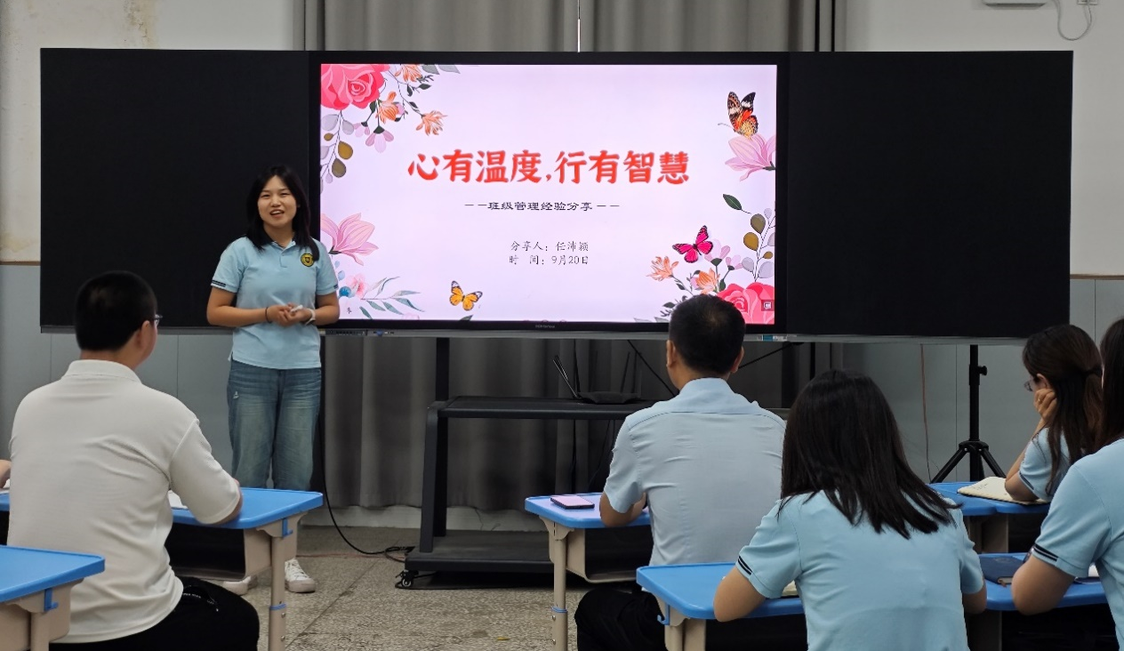 在跨越南北兩校的分享中,任沛穎以“心有溫度,行有智慧”為主題,闡述了如何建立良好的師生關系,如何有效處理班級事務,以及如何激勵學生的學習積極性。任沛穎指出,班主任不僅要關注學生走得快不快,還要關注學生走得遠不遠,更要關注學生過得好不好。只有家校攜手,孩子們才能迅速成長。任沛穎生動的圖片展示和細致的經(jīng)驗分析,讓在場的青年班主任受益匪淺。