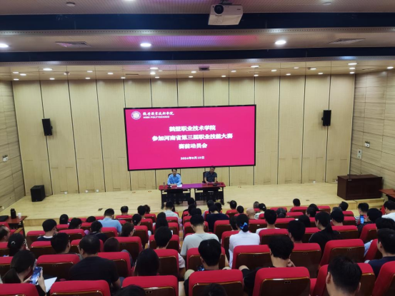 9月19日下午,鶴壁職業(yè)技術(shù)學(xué)院在海棠園校區(qū)1號報告廳召開參加河南省第三屆職業(yè)技能大賽賽前動員會。學(xué)校各二級學(xué)院負(fù)責(zé)人、大賽裁判、指導(dǎo)教師及參賽選手參加了會議。學(xué)校黨委委員、副校長楊長春出席會議并做了賽前動員講話。會議由教務(wù)處處長侯鐵兵主持。