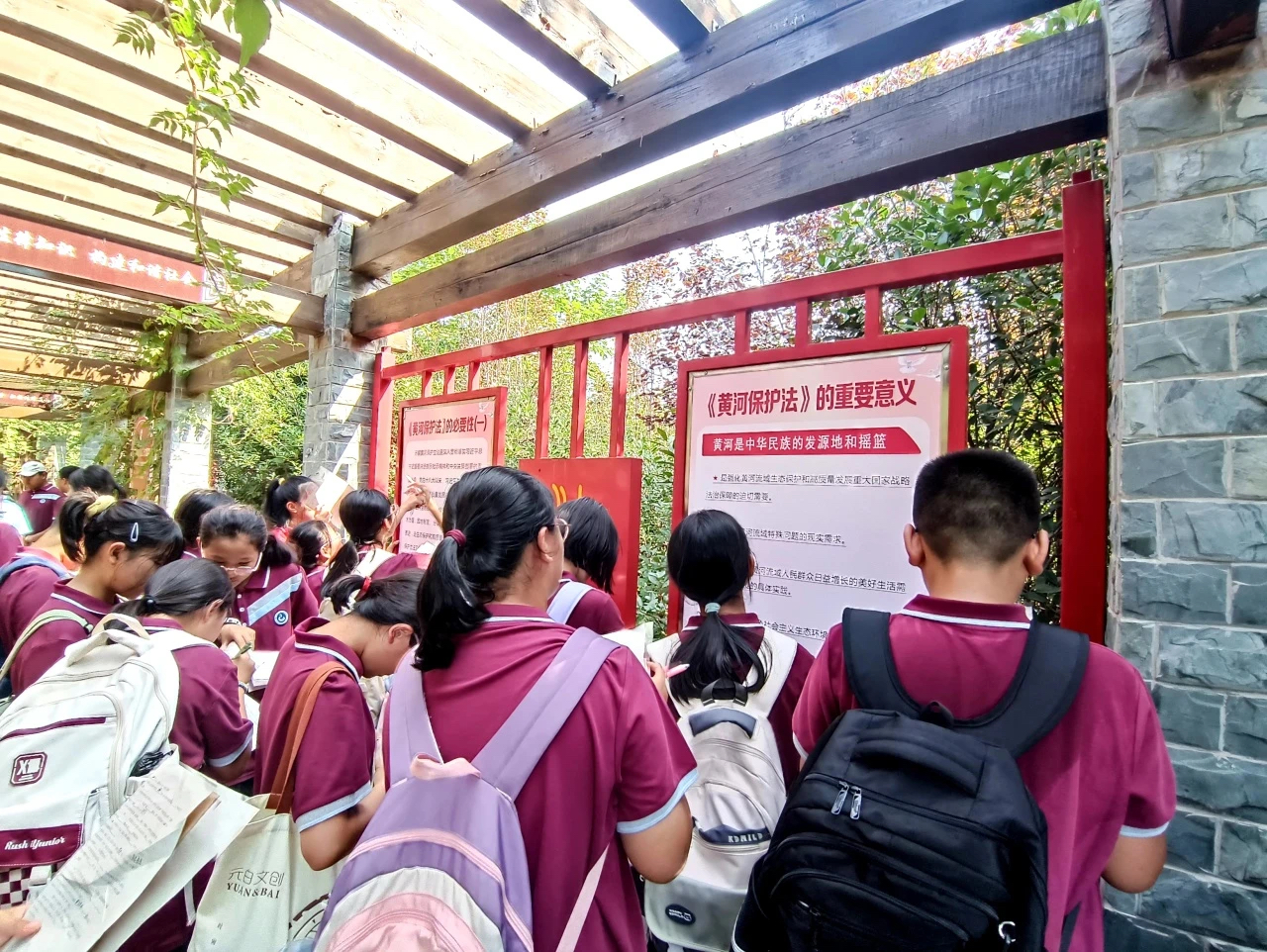 教師王亞貞從“縱覽全程,把握流域概貌”“防洪治沙,了解水文特征”“地理視角,洞悉花園口事件”三方面對黃河做簡短介紹。隨后,同學(xué)們到達(dá)黃河博物館,在講解員的帶領(lǐng)下,認(rèn)知黃河流域的地形地貌,增強(qiáng)了對黃河流域生態(tài)保護(hù)的意識,感受到黃河文化的魅力,領(lǐng)略了生生不息的黃河精神。