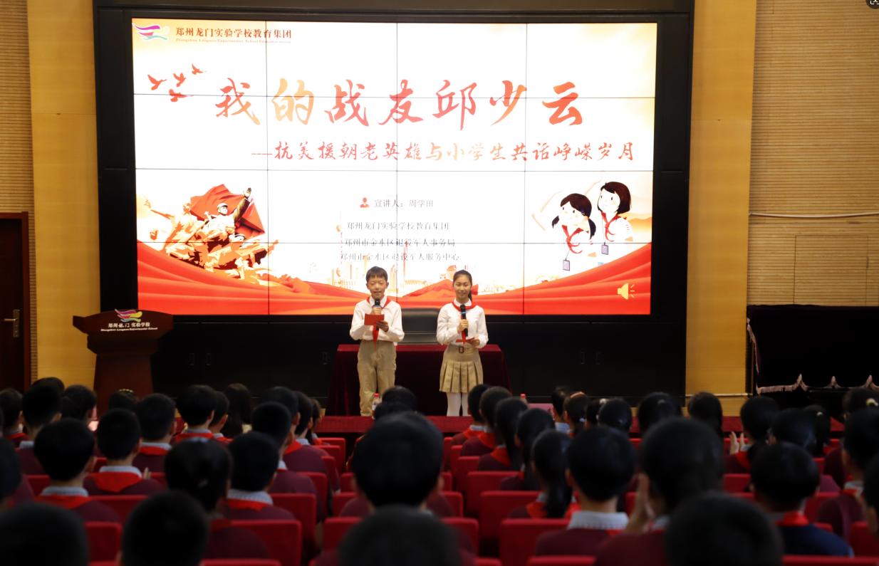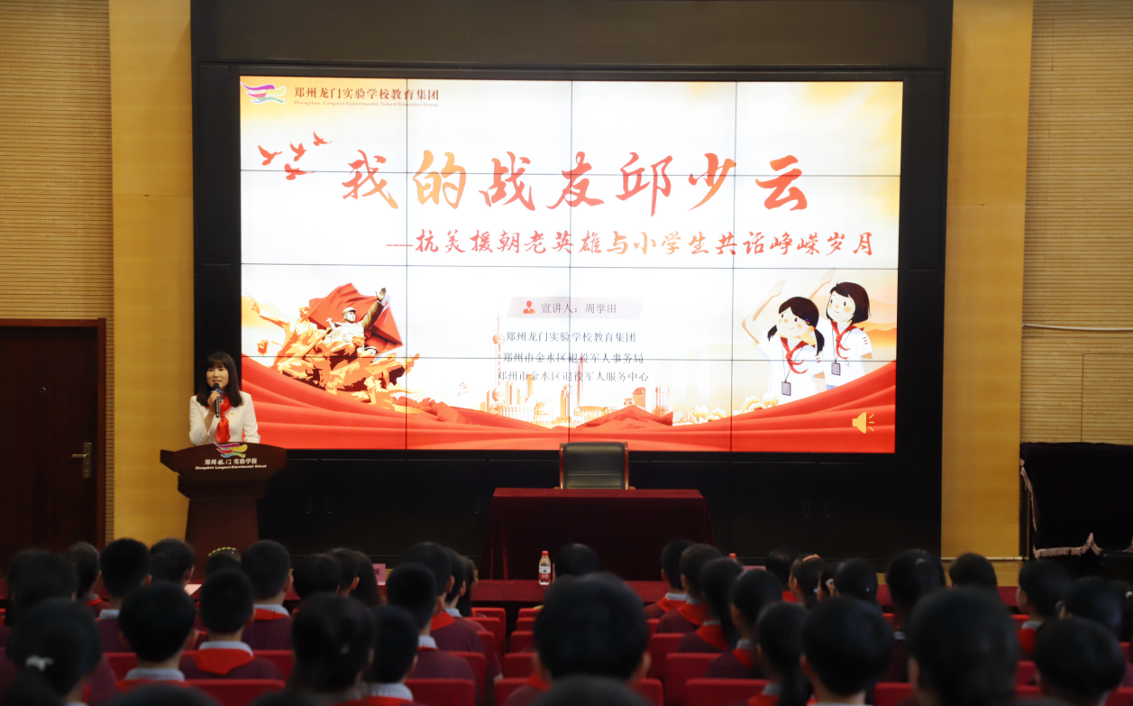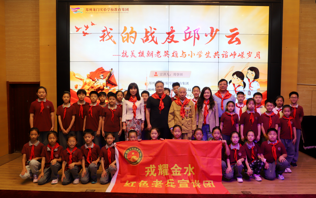 9月25日下午,鄭州龍門實驗學(xué)校聯(lián)同金水區(qū)退役軍人事務(wù)局,邀請“戎耀金水——紅色老兵宣講團(tuán)”成員周學(xué)田老英雄走進(jìn)學(xué)校,進(jìn)行了一場題為“我的戰(zhàn)友邱少云”愛國主義教育宣講報告會,致敬革命先烈,弘揚英烈精神,傳承紅色基因。學(xué)校領(lǐng)導(dǎo)和金水區(qū)退役軍人事務(wù)局領(lǐng)導(dǎo)同少先隊員們一起參加了活動。