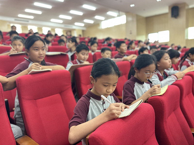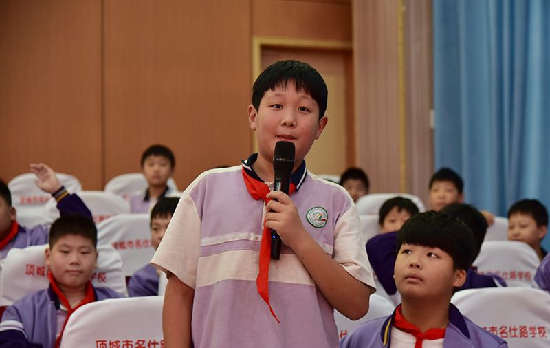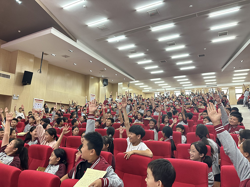 在沈丘縣新區(qū)實驗小學、鄭州市鄭東新區(qū)眾意路小學,史軍博士以《綠智之光:科學家精神澆灌的人類文明發(fā)展史》為題,通過袁隆平、屠呦呦、鐘楊三位科學家的故事,不僅為在場師生普及了科學知識,更為大家展現(xiàn)了迎難而上、無私奉獻、孜孜以求的科學家精神,闡述了科學家精神對于人類文明發(fā)展史的重要意義,倡導同學們樹立科學夢想,掌握科學方法,養(yǎng)成科學思維,讓科學成為生活的一部分。科學家令人敬佩的精神引起了在場同學們的強烈共鳴,大家在思考后提出自己的問題,史軍博士的解答讓同學們對科學家精神、科學閱讀有了進一步的認識和理解。