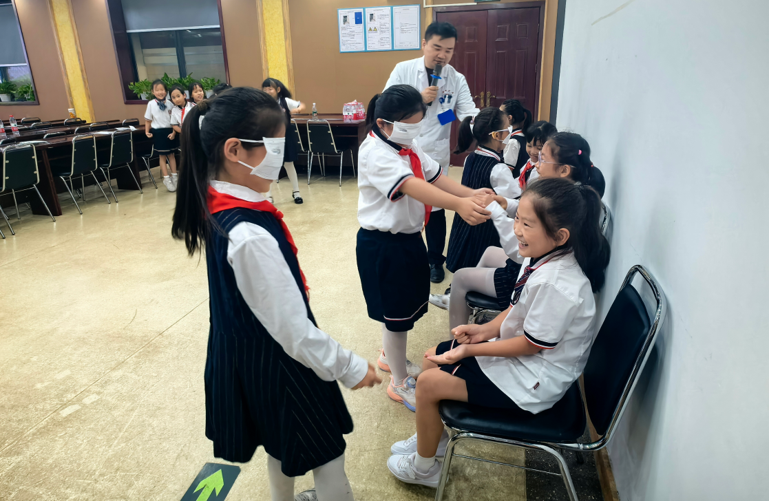 為鼓勵同學們時刻關(guān)注用眼衛(wèi)生,保護視力,視光部楊主任還通過知識問答、游戲比賽的方式,寓教于樂,再次普及科學用眼相關(guān)知識,并對表現(xiàn)積極的學生進行獎勵。為了真切感受到眼睛的重要性,孩子們開展了“蒙眼取物”小游戲,蒙上小眼睛,小心翼翼地摸索著,真真切切地體驗了身處黑暗中的感受,從而親身體會到有雙明亮的眼睛是多么重要!隨后,同學們進行了電腦驗光、爭當小小體驗官。又來到了視覺訓練室體驗活動、參觀了近視手術(shù)展示區(qū),探索視覺的神奇。