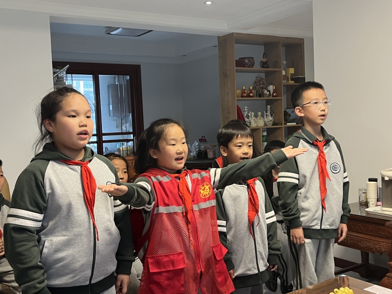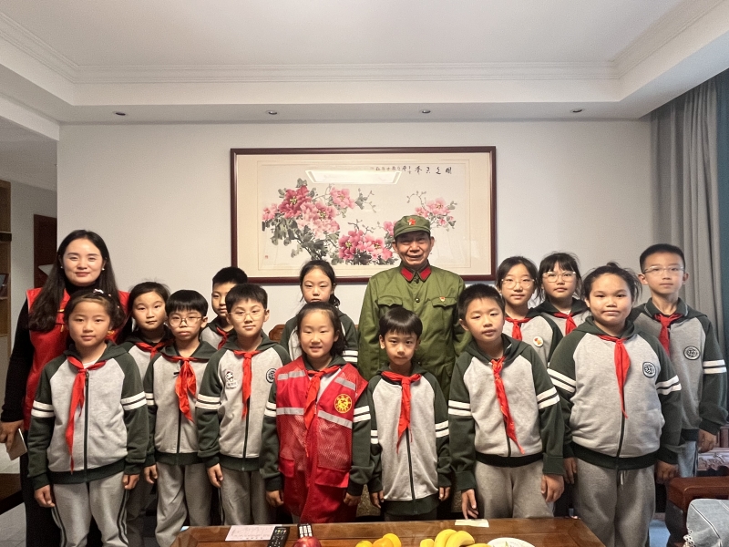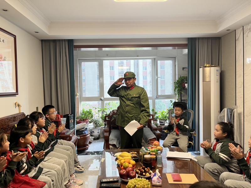 優(yōu)秀少先隊員代表走進(jìn)老戰(zhàn)士趙延俊爺爺家中,孩子們?yōu)橼w爺爺精心準(zhǔn)備了歌曲《半生雪》,“中華五千年,多少英雄豪杰,戰(zhàn)火里的容顏觸動心弦……”清澈稚嫩的童聲唱出了少先隊員們對革命先輩們的崇敬。