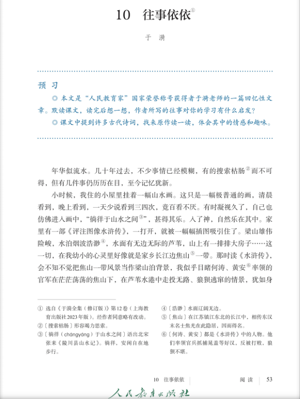 圖一:2024年新修訂的七年級上冊語文教材中的《往事依依》