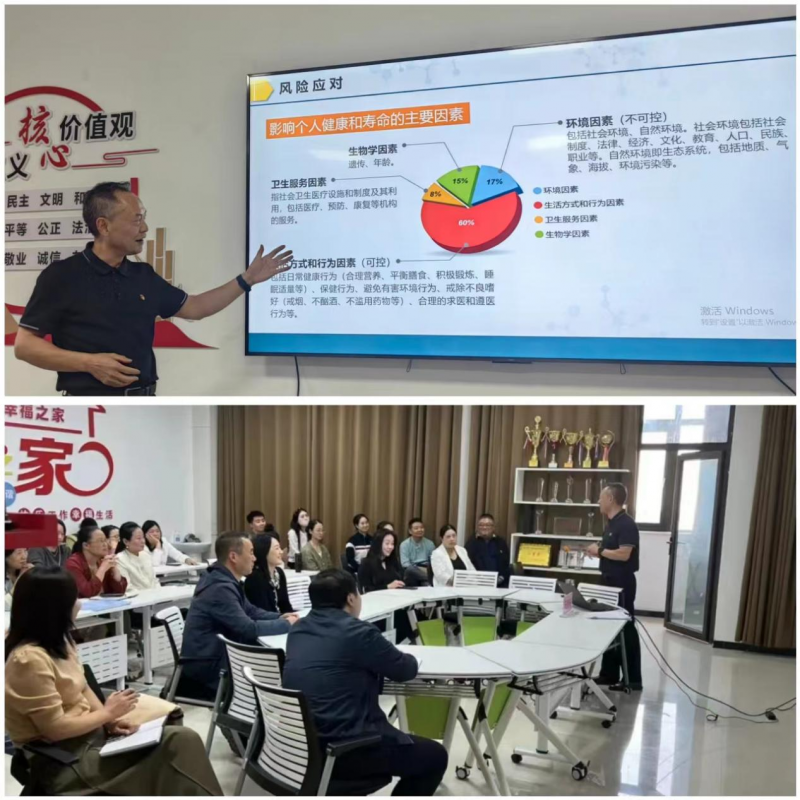 “五老”代表開展健康教育講座。10月10日,原校黨委副書記、“五老”代表王傳中以《代謝綜合征——熟悉又陌生的疾病》為主題為機關(guān)黨總支、臨床醫(yī)學(xué)院、護理學(xué)院、康養(yǎng)學(xué)院等60余名教職工代表開展健康教育知識講座。王傳中以扎實的專業(yè)學(xué)識、豐富的數(shù)據(jù)支撐、生動的知識講解、標(biāo)準(zhǔn)的動作展示、活潑的現(xiàn)場互動,從什么是代謝綜合征、代謝綜合征的指征特點、主要危害、如何應(yīng)對4個方面進行講解,提出通過管理體重、健康飲食、適量運動、保障睡眠、戒煙限酒、合理用藥、管理情緒等方式應(yīng)對風(fēng)險,把健康鑰匙牢牢抓在自己手中。勉勵大家,要學(xué)以致用,從自身做起,踐行健康生活方式,在工作中教育學(xué)生、在生活中教育子女,做自己健康的第一責(zé)任人,在關(guān)心下一代工作中做出自身的健康擔(dān)當(dāng)。