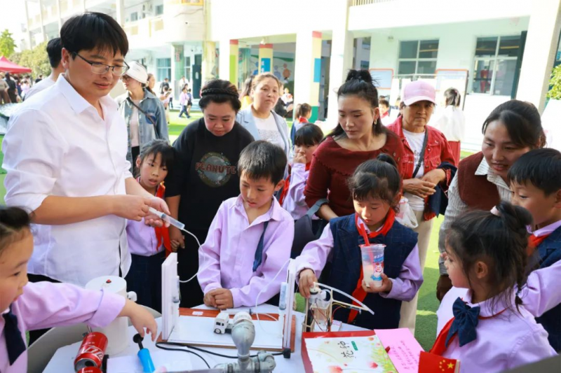 在豐收科技作品展區(qū)前,各項(xiàng)蘊(yùn)含科技原理的小發(fā)明充分展現(xiàn)了該校小學(xué)生熱愛(ài)科學(xué)、勤于動(dòng)手的最新成果。