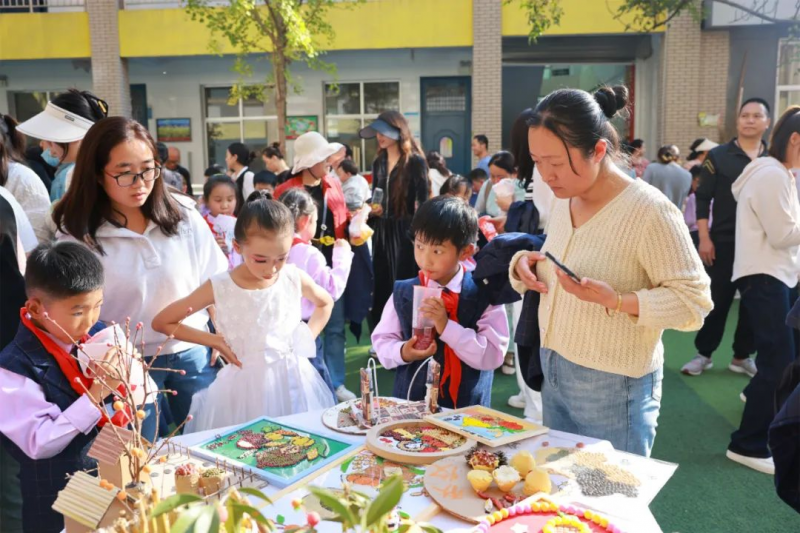 在“創(chuàng)意話豐收”展示區(qū),造型各異的豐收景象,藏在“中國(guó)地圖”里,藏在籮筐、笸籮里,更藏在孩子們有趣的情景表演里。三(2)班的韓思彤家長(zhǎng)說(shuō):“看到孩子們一張張自信展示的笑臉,看到整個(gè)現(xiàn)場(chǎng)的布置、組織,我感覺(jué)三小的勞動(dòng)教育真是越辦越好了!”