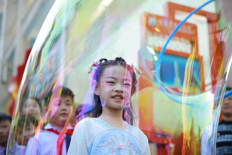 “望稻浪翻滾,映照勤勞的身影;聽(tīng)笑語(yǔ)連連,奏響豐收的樂(lè)章”。在激情澎湃的開(kāi)場(chǎng)鑼鼓聲中,由該校師生自編自演的慶豐收文藝演出拉開(kāi)了帷幕。文藝演出共分為“喜迎豐登、耕耘頌歌、豐收贊歌、分享歡娛、展望未來(lái)”五個(gè)部分。孩子們身穿白紗裙,手持稻穗表演的歌舞《禾下乘涼夢(mèng)》讓人們淚目又驕傲。《豐收的樂(lè)章》《五谷豐登》《中國(guó)永遠(yuǎn)收獲著希望》等節(jié)目用歌聲、舞蹈與歡笑共同編織出了一幅幅豐收的畫(huà)卷,讓人們感受到了來(lái)自田野的喜悅與滿足。