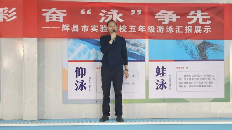 一次活動(dòng),一次收獲,一份成長,一份感動(dòng)。時(shí)光不負(fù)努力,年少不負(fù)夢想!為進(jìn)一步推動(dòng)游泳運(yùn)動(dòng)在實(shí)驗(yàn)學(xué)校的廣泛開展,強(qiáng)化“學(xué)會(huì)游泳,預(yù)防溺水”理念的進(jìn)一步落地,全面提高學(xué)生身體素質(zhì),豐富學(xué)校體育活動(dòng),增強(qiáng)學(xué)生集體榮譽(yù)感和組織凝聚力,10月15日,輝縣市實(shí)驗(yàn)學(xué)校舉行了五年級游泳匯報(bào)展示。本次展示分設(shè)50米男子自由泳、50米女子自由泳、100米混合游泳接力。
