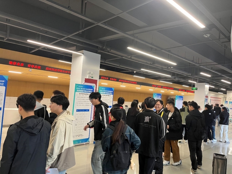 10月18日,“豫薦未來 青春啟航”臺州專場招聘會在鄭州科技學(xué)院招生就業(yè)處一站式服務(wù)大廳舉行,浙江溫嶺市人社局副局長吳永標(biāo)等一行三人帶來浙江臺州市17家優(yōu)質(zhì)企業(yè)參會,其中上市企業(yè)4家、大型企業(yè)13家。招聘會由電子與電氣工程學(xué)院承辦,信息工程學(xué)院、機械工程學(xué)院、食品科學(xué)與工程學(xué)院、大數(shù)據(jù)與人工智能學(xué)院、車輛與交通工程學(xué)院、財經(jīng)學(xué)院等學(xué)院2025屆畢業(yè)生參與。