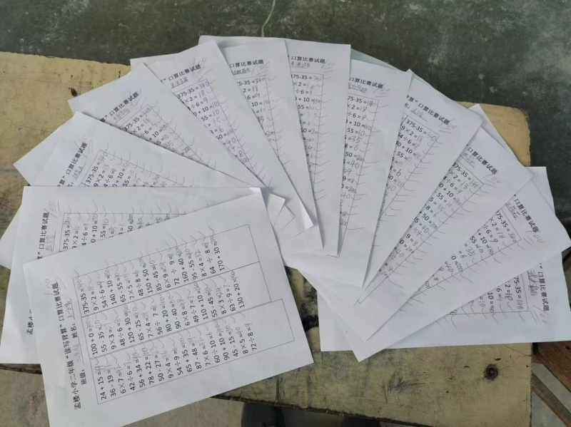 《義務(wù)教育數(shù)學(xué)課程標(biāo)準(zhǔn)》明確指出:“培養(yǎng)學(xué)生計(jì)算能力要重視基本的口算訓(xùn)練。口算既是筆算、估算和簡(jiǎn)便運(yùn)算的基礎(chǔ),也是計(jì)算能力的重要組成部分。”為了進(jìn)一步提高學(xué)生的口算能力和計(jì)算速度,同時(shí)培養(yǎng)學(xué)生的觀察力、記憶力及思維能力,進(jìn)而培養(yǎng)學(xué)生的競(jìng)爭(zhēng)意識(shí),范縣龍王莊鎮(zhèn)孟樓小學(xué)于10月23日舉行了“讀寫背算”基礎(chǔ)能力提升活動(dòng)之口算比賽。