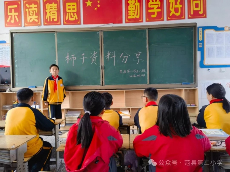 采摘前,班主任老師們深入淺出地講述了霜降節(jié)氣的由來、氣候特征和傳統(tǒng)習(xí)俗,并引導(dǎo)同學(xué)們尊重自然,順應(yīng)季節(jié),感恩收獲。接著,老師們鼓勵(lì)同學(xué)們搜集采摘安全要領(lǐng)、采摘果實(shí)方法以及關(guān)于柿子的小調(diào)查,并分享給班級(jí)其他同學(xué)。