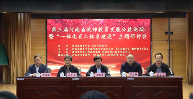 11月2日,第三屆河南教師教育發(fā)展公益論壇暨“一體化育人體系建設(shè)”主題研討會(huì)在漯河市實(shí)驗(yàn)小學(xué)舉行。漯河市委教育工委副書記,市教育局黨組書記、局長(zhǎng)王海東,河南省教育學(xué)會(huì)教師教育專業(yè)委員會(huì)理事長(zhǎng),河南師范大學(xué)教育學(xué)部部長(zhǎng)羅紅艷,河南師范大學(xué)研究生院副院長(zhǎng)楊全喜,河南省教育學(xué)會(huì)教師教育專業(yè)委員會(huì)秘書長(zhǎng),《河南教育》(教師教育)雜志運(yùn)營(yíng)總監(jiān)、河南省樹人教育交流中心主任韓玉兵,漯河市實(shí)驗(yàn)小學(xué)教育集團(tuán)核心校黨總支書記張潔春出席會(huì)議。河南省教師教育專業(yè)委員會(huì)會(huì)員單位代表,漯河市實(shí)驗(yàn)小學(xué)教育集團(tuán)及聯(lián)盟校的部分教師參加會(huì)議。