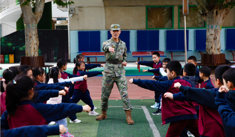 隨著整齊嘹亮的口號聲響起,一年級的國防教育體驗課正式拉開帷幕。活動由德育主任魏方迪組織并主持,整個課程精心設(shè)計了三大環(huán)節(jié):戰(zhàn)士們隊列展示、軍體拳演示以及分班級訓(xùn)練,旨在全方位、多角度地讓學(xué)生們體驗國防教育的精髓。