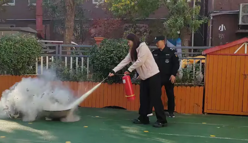 鄭老師還針對(duì)消防安全器材——滅火器、消防栓等,從種類、結(jié)構(gòu)、滅火原理、使用方法等進(jìn)行了詳細(xì)的講解。馮圣琳老師演示了滅火器的正確使用方法“一提、二拔、三握、四壓”。