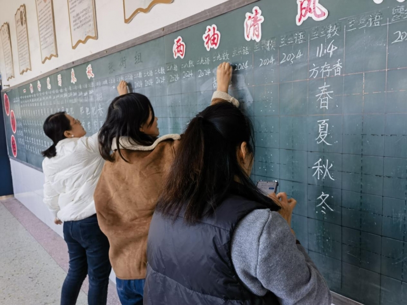 本次活動吸引了全體教師積極參與,粉筆字書寫在教師練功區(qū)墻面進行。一筆一劃,剛勁有力;橫豎撇捺,盡顯神韻。教師們用粉筆書寫著對教育的熱愛與執(zhí)著,那一行行整齊美觀的粉筆字,仿佛是一幅幅精美的藝術(shù)品,吸引著眾多師生駐足欣賞。評委老師認真批改,并給出中肯的指導意見。