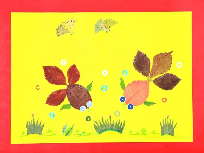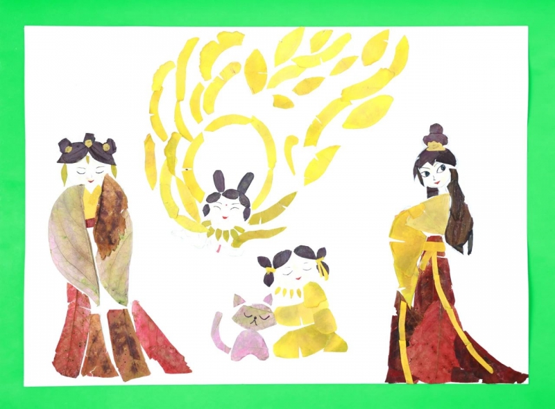 這次活動(dòng)作品形式多樣,除有葉貼畫(huà)外,還有葉種組合貼畫(huà)、葉上繪畫(huà)、花朵拼畫(huà)等;內(nèi)容豐富,有動(dòng)物、植物、風(fēng)景、人物、故事,以及能體現(xiàn)時(shí)代感的天文科技等主題作品;制作的技法大膽,有葉子剪刻、干花拼畫(huà)、種子染色、葉面繪畫(huà)等,并與美術(shù)技法相結(jié)合。