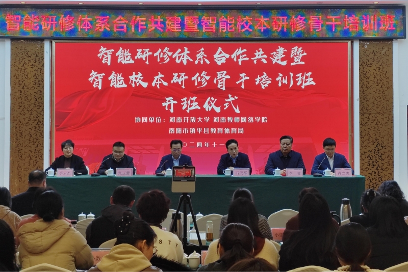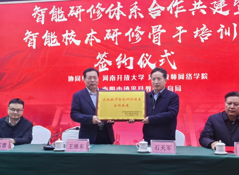 11月20日,鎮(zhèn)平縣教體局與河南開放大學(xué)舉行智能研修體系合作共建項(xiàng)目簽約儀式,在教育數(shù)智化領(lǐng)域攜手展開新合作,推進(jìn)縣域教師智能研修體系建設(shè)。河南開放大學(xué)黨委副書記王繼東,鎮(zhèn)平縣委常委、宣傳部部長(zhǎng)、縣政府副縣長(zhǎng)石天軍,河南開放大學(xué)河南教師網(wǎng)絡(luò)學(xué)院主任肖立志,南陽(yáng)市教育局教師工作科科長(zhǎng)張玉蕾,鎮(zhèn)平縣教體局一級(jí)主任科員李哲,鎮(zhèn)平縣教師進(jìn)修學(xué)校校長(zhǎng)李云杰出席會(huì)議。鎮(zhèn)平縣玉都實(shí)驗(yàn)學(xué)校、雪楓實(shí)驗(yàn)學(xué)校、石佛寺鎮(zhèn)中心小學(xué)等3所基地學(xué)校校長(zhǎng),校本研修指導(dǎo)團(tuán)隊(duì)、學(xué)科骨干團(tuán)隊(duì)成員共66人參加活動(dòng)。