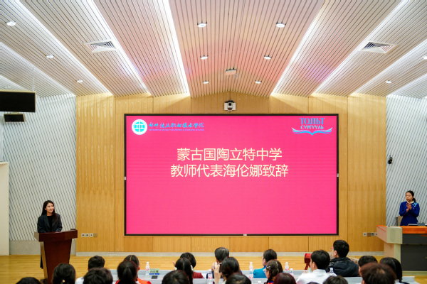蒙古國陶立特中學(xué)教師海倫娜在致辭中表示,參加“漢語橋”來華體驗(yàn)交流,對所有蒙古國師生來說是一次特殊的經(jīng)歷。尤其是學(xué)生初次接觸中國“復(fù)興號”高鐵,讓他們對中國高鐵技術(shù)發(fā)展有了新的認(rèn)識。學(xué)校組織的高鐵模擬駕駛、地鐵實(shí)訓(xùn)體驗(yàn)、非遺文化參觀等活動,給他們留下了難忘的回憶。希望兩校在漢語教育和文化交流方面能進(jìn)一步開展合作。