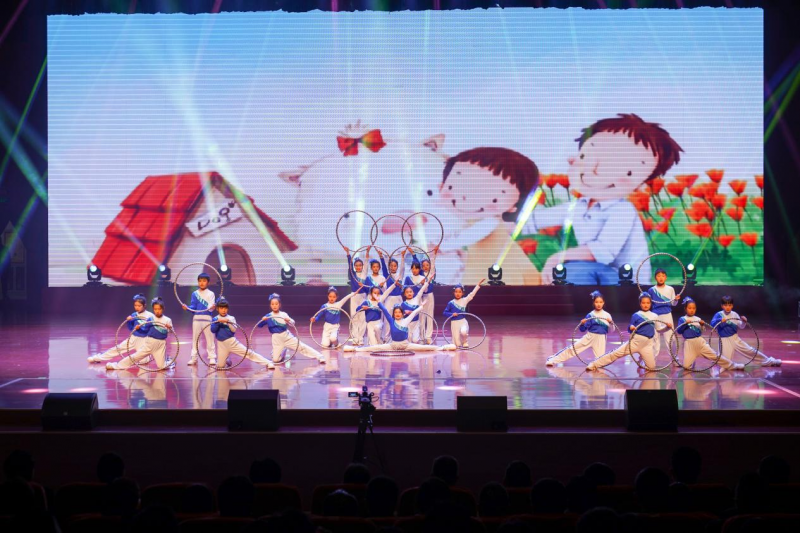 演出開始后,10所農(nóng)村“五育”并舉實驗學校的呼啦圈操、花樣跳繩、古詩韻律操、毛主席詩詞朗誦、讀唐詩舞蹈等形式多樣的精彩節(jié)目相繼登臺。天真可愛的孩子們飽含激情盡情舞動、真情演繹,以過硬的綜合素質(zhì)贏得了與會人員的好評和贊譽。