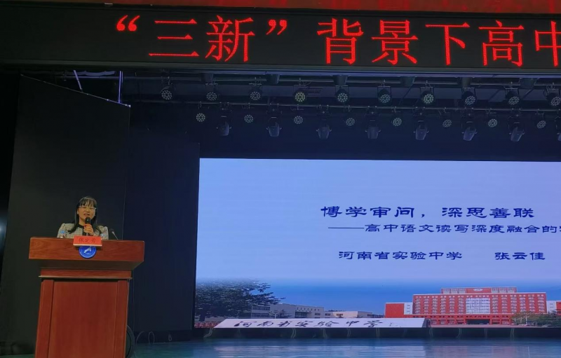 成果匯報(bào)環(huán)節(jié),河南省實(shí)驗(yàn)中學(xué)教師張定勇、張?jiān)萍?/span>分別做了題為《以文化人,多元融合——中學(xué)語(yǔ)文深度讀寫(xiě)教學(xué)二十五年探索與實(shí)踐》和《博學(xué)審問(wèn),深思善聯(lián)——高中語(yǔ)文讀寫(xiě)深度融合的實(shí)踐探索》的匯報(bào),展現(xiàn)了河南省實(shí)驗(yàn)中學(xué)在語(yǔ)文教學(xué)理念的創(chuàng)新性與前瞻性,為高中語(yǔ)文教學(xué)提供了新的思路。