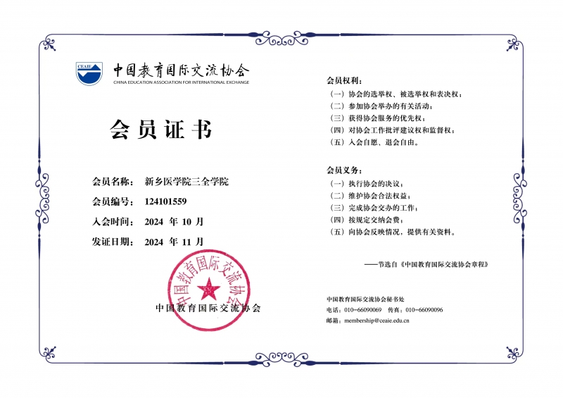 近日,在新鄉(xiāng)醫(yī)學(xué)院三全學(xué)院的積極申請(qǐng)下,經(jīng)中國教育國際交流協(xié)會(huì)第七屆十四次常務(wù)理事會(huì)審議通過,該校正式成為中國教育國際交流協(xié)會(huì)會(huì)員單位。