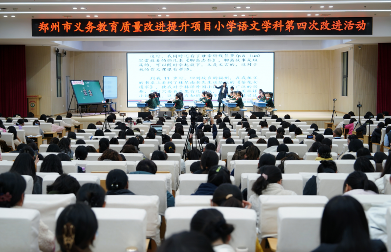 鄭州市義務教育質量改進提升項目小學語文學科第四次改進活動于12月3日至4日在金水區(qū)農科路小學國基校區(qū)舉行。北京教科院基教研中心小學語文教研員李英杰、北京市海淀區(qū)實驗小學教師于明,北京市西城區(qū)康樂里小學教師范繼涵、趙欣,鄭州市基礎教育教學研究室語文教研員余昆侖,金水區(qū)教育發(fā)展研究中心副主任趙楊,金水區(qū)教育發(fā)展研究中心小學語文教研員陳紅霞、柳莉萍、張謙,金水區(qū)農科路小學教育集團黨委書記、校長孫永亮,各區(qū)縣(市)小學語文教研員、部分小學語文教師,以及金水區(qū)“閱讀力”提升工作坊成員、金水區(qū)學科中心組、青年中心組成員共計500余人參加本次活動。此次活動為期兩天,主要圍繞課例研討、說課交流、專家引領和工作坊成員沙龍研討四項內容展開。通過活動持續(xù)提升鄭州市小學語文教師的教育教學能力和專業(yè)發(fā)展水平,深化教師對“六步備課模型”“欣賞評價能力進階模型”的理解和實踐。